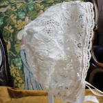 Het jurkje en mutsje zijn afgewerkt met antiek kant.